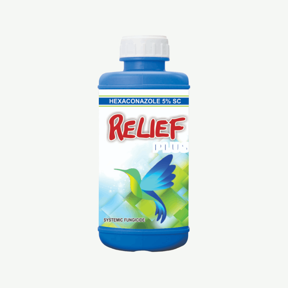 RELIEF PLUS (Hexaconazole 5% SC) is a systemic fungicide recommended for the control of powdery mildew in mango and sheath blight in rice. It ensures effective disease control and helps maintain crop vigor.