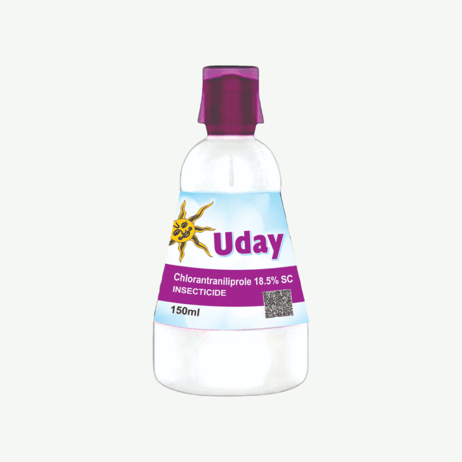 UDAY contains Chlorantraniliprole 18.5% SC. It belongs to the anthranilic diamide group of insecticides. It controls moth and butterfly caterpillars (larvae) and also controls some beetles and true bugs like aphids and spittlebugs.