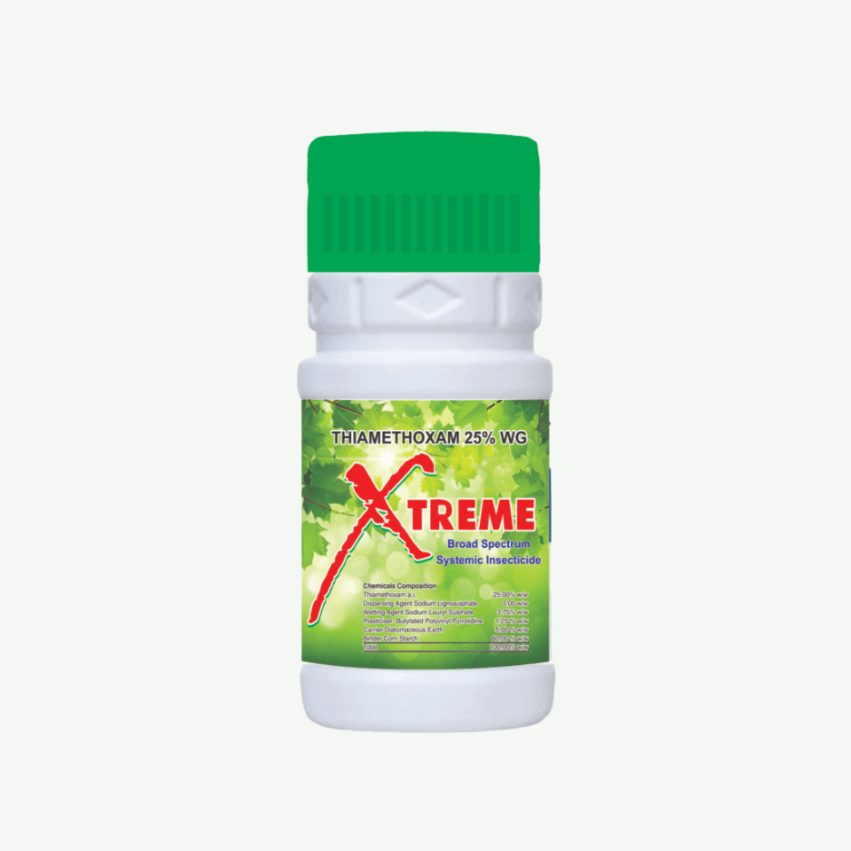 XTREME contains Thiamethoxam 25% WG and is absorbed into the plant system. It provides effective control of aphid, jassid and whitefly by systemic action and ensures long-duration pest protection.